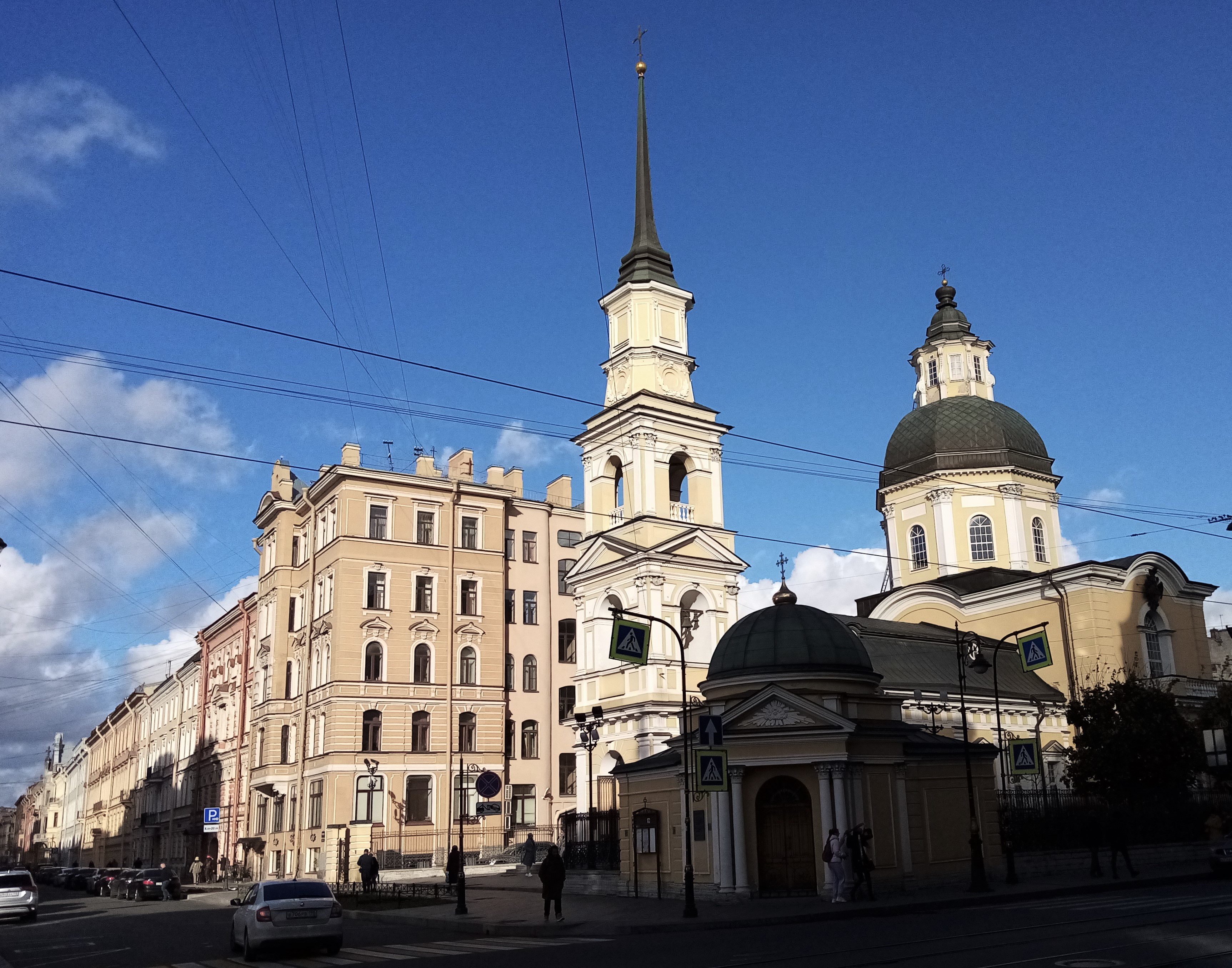 Ближайшей к этому дому была одна из старейших в Петербурге Симеоновская церковь, деревянная - с 1712 года, каменная - с 1733 года. Возраст церкви отсчитывается от ее первого освящения. Здесь же - часовня, построенная в 1806 году, перестроенная в 1869.
