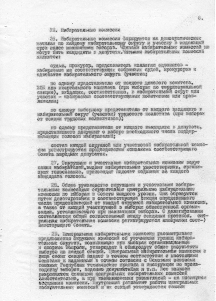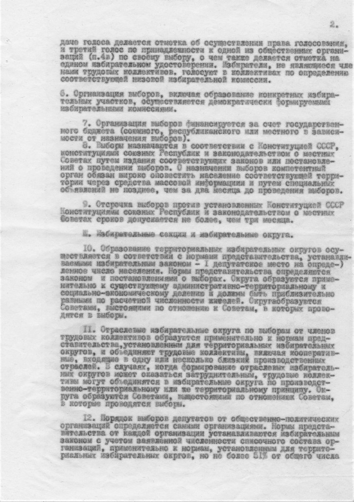Часть концепции - про выборы от общественных организаций, как мы знаем, была использована в союзном законе о выборах-89. А для закона о республиканских и местных выборах подтянули идею выборов по отраслевым избирательным округам. В обновленной версии уже нет депутатов от общественных организаций. Вместо них - депутаты по производственным округам, которые должны занять две трети мест в районном совете, а депутаты от территории одну треть. Но всеобщие выборы – только на уровень районного совета. Депутаты следующего уровня - областей, республик в составе союзной республики (для Ленинграда - Ленсовет) избираются уже не гражданами, а собраниями депутатов районных советов территории. Депутаты союзной республики избираются собраниями депутатов своих административных единиц. Для нашего случая – собранием депутатов Ленсовета и Ленинградской области (тогда еще это была единая административная единица).