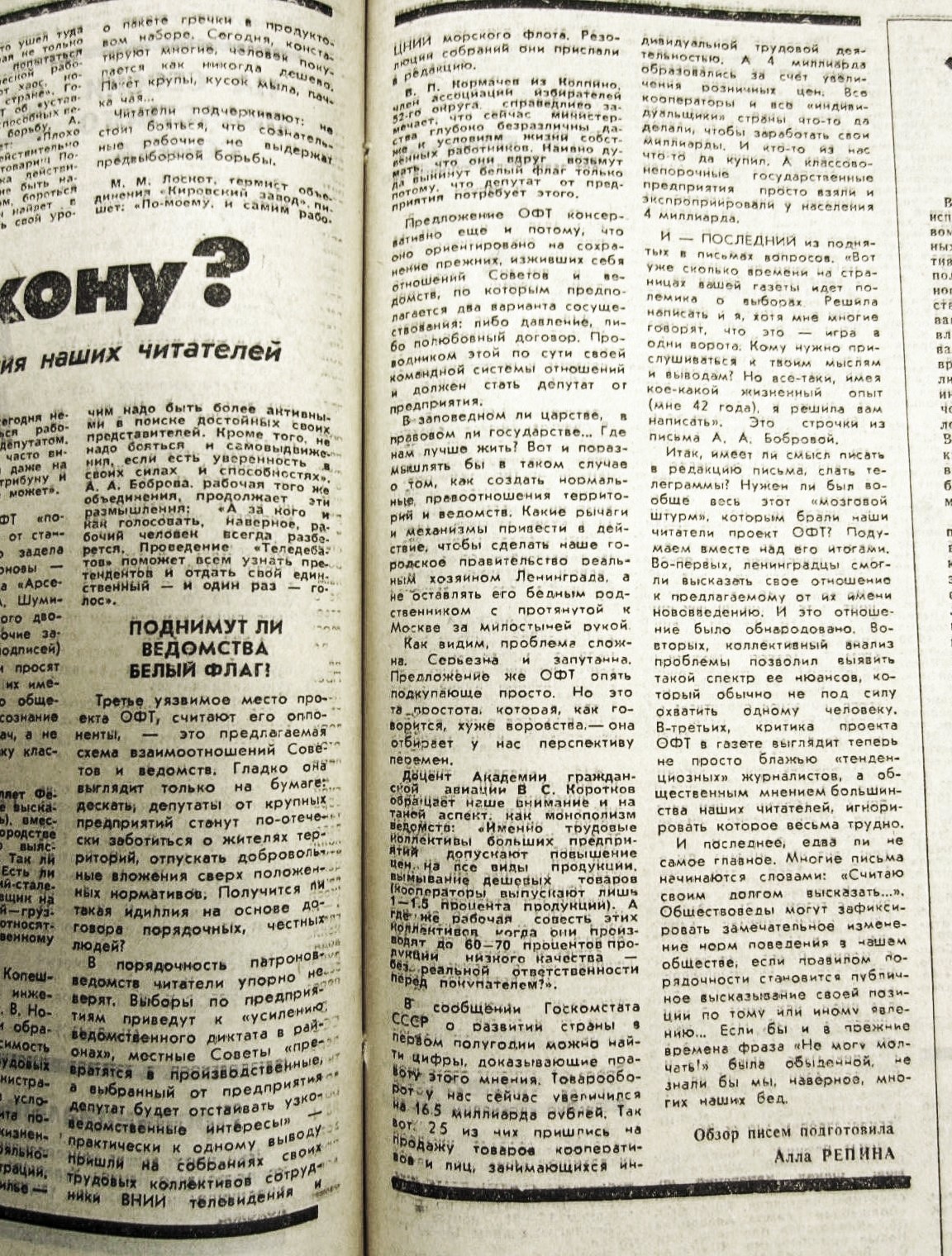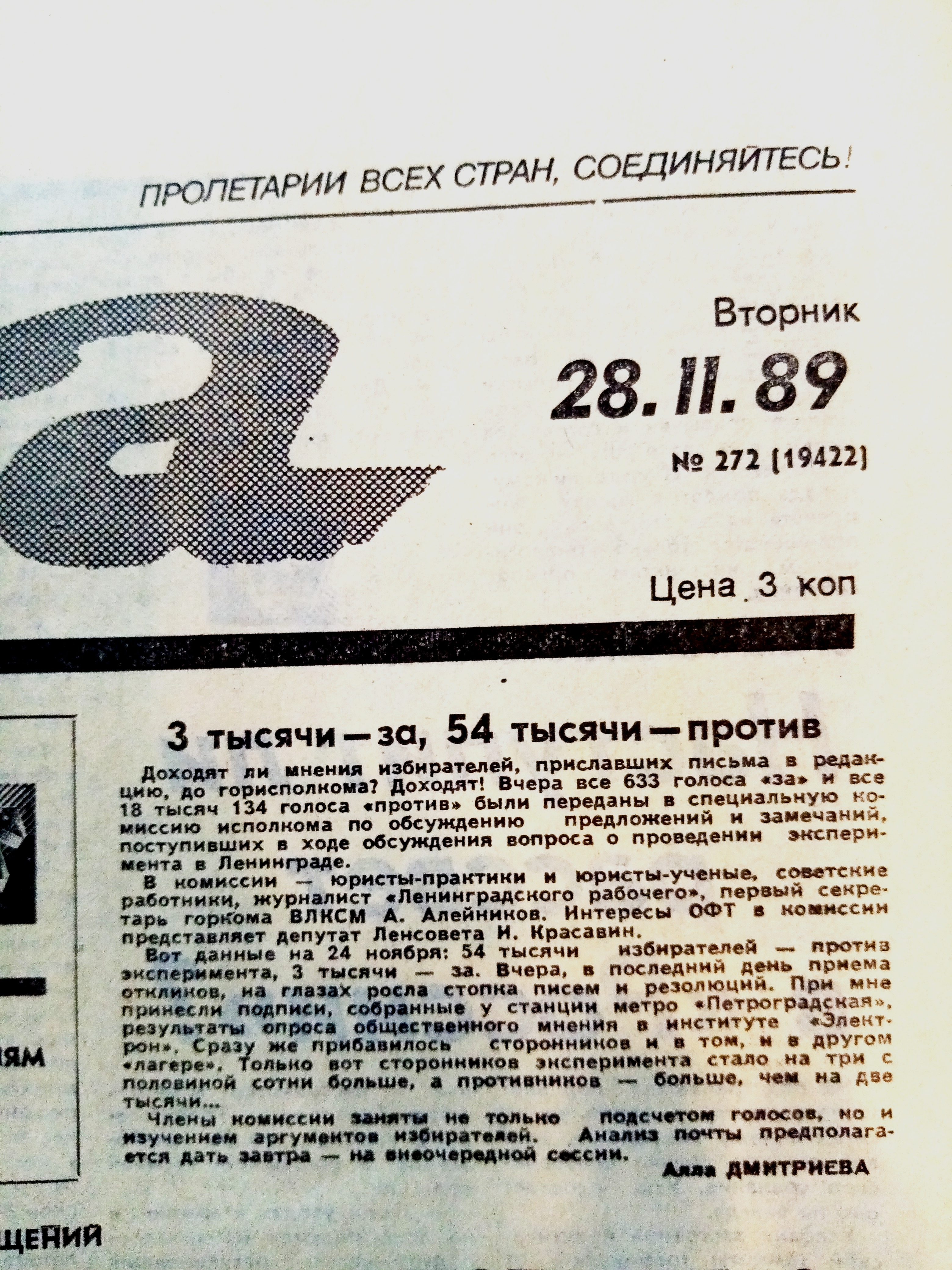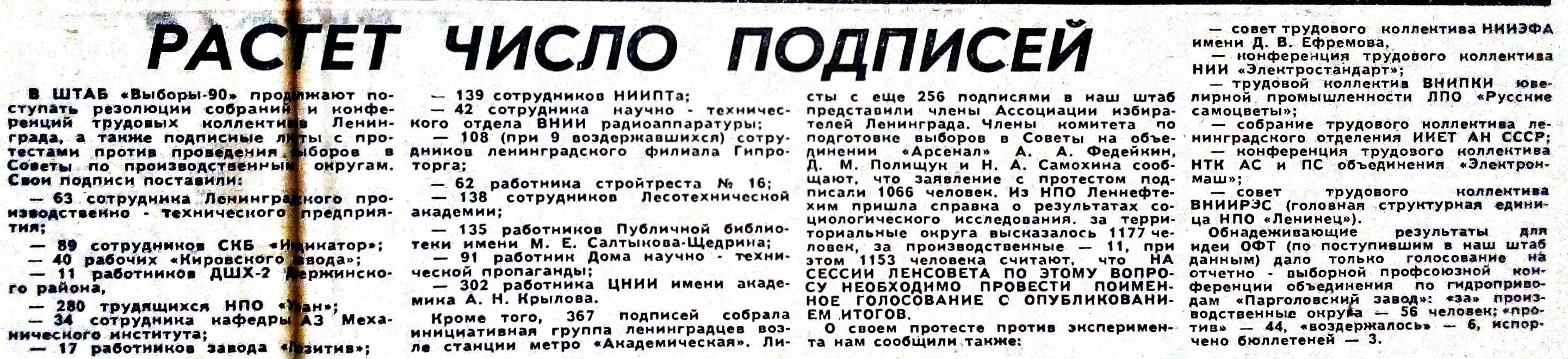Ошеломленные небывалым к себе вниманием и объемом протестной почты, депутаты того сонного Ленсовета в конце ноября 1989 г. устроили «бурное заседание» - так написала «Смена». И отвергли предложение о проведении избирательного эксперимента.
